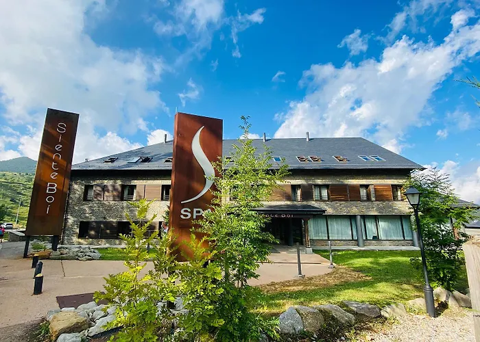 Aparthotel Siente Boí&SPA, un hotel de 4 estrellas con una calificación de 8.7/10 en Booking.com, ofrece un diseño moderno con materiales como piedra y madera. Este hotel cuenta con un spa de última generación y una piscina al aire libre, ideal para disfrutar después de un día de esquí en los Pirineos.