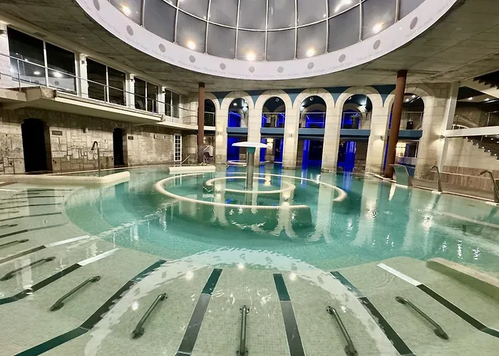 Balneario de Mondariz, un hotel de 4 estrellas con una calificación de 8.0/10 en Booking.com, es un complejo spa conocido por sus instalaciones de bienestar que incluyen un spa completo y un campo de golf de 18 hoyos. Ofrece una variedad de servicios como conexión WiFi gratuita y un hermoso jardín con parque infantil para actividades infantiles.