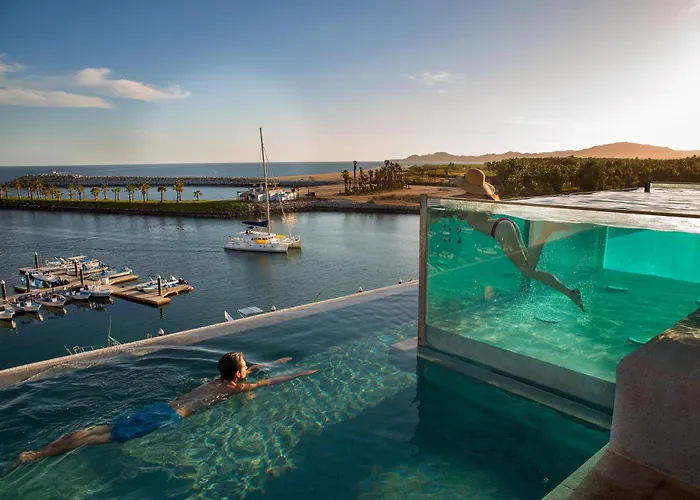 Hotel El Ganzo - Adults Only se distingue por su ubicación en la base de la marina de Puerto Los Cabos y por ofrecer un acceso a una de las pocas playas nadables en San José del Cabo. Este hotel de 5 estrellas cuenta con un Club de playa privado, además de un enfoque en la sostenibilidad y el arte.