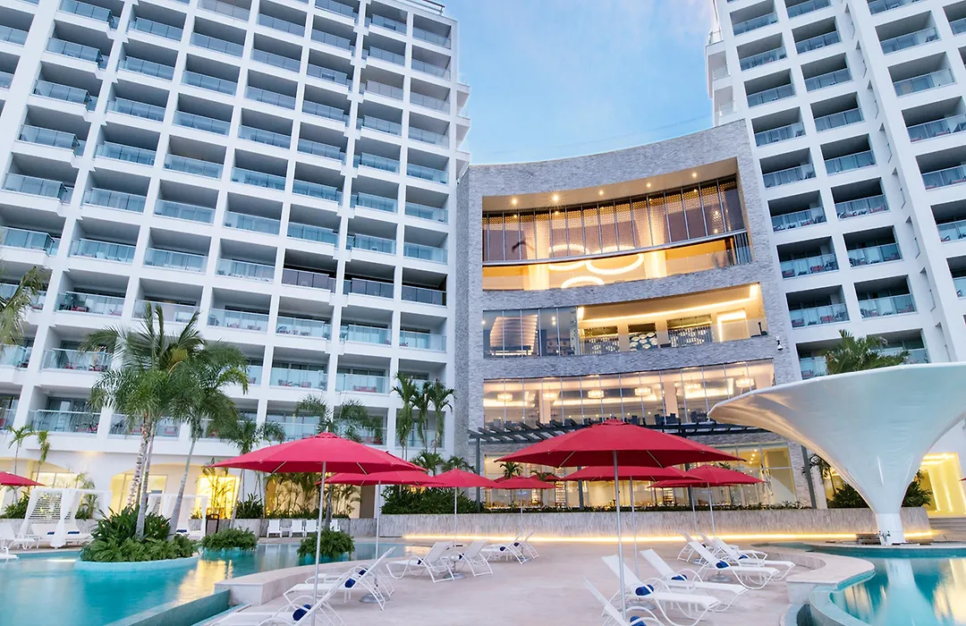 Hilton Vallarta Riviera All-Inclusive Resort,Puerto Vallarta (Adults Only), un hotel de 4 estrellas con una calificación de 9.0/10 en Booking.com, presenta una experiencia todo incluído adaptada únicamente para adultos. Ofrece una variedad de comodidades, incluyendo acceso a una playa privada, piscina al aire libre, y opciones de entretenimiento nocturno.