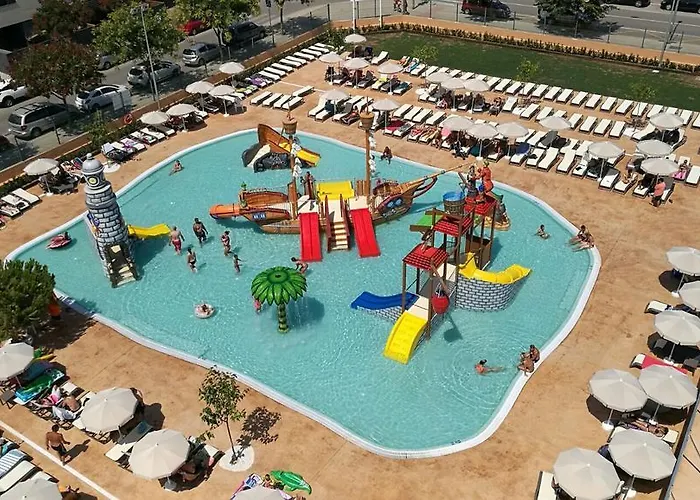 Hotel Sorra Daurada Splash destaca por su enfoque familiar con múltiples actividades recreativas. Este hotel de 4 estrellas cuenta con un parque acuático, tres piscinas y un restaurante buffet, ideal para unas vacaciones en la Costa de Barcelona.