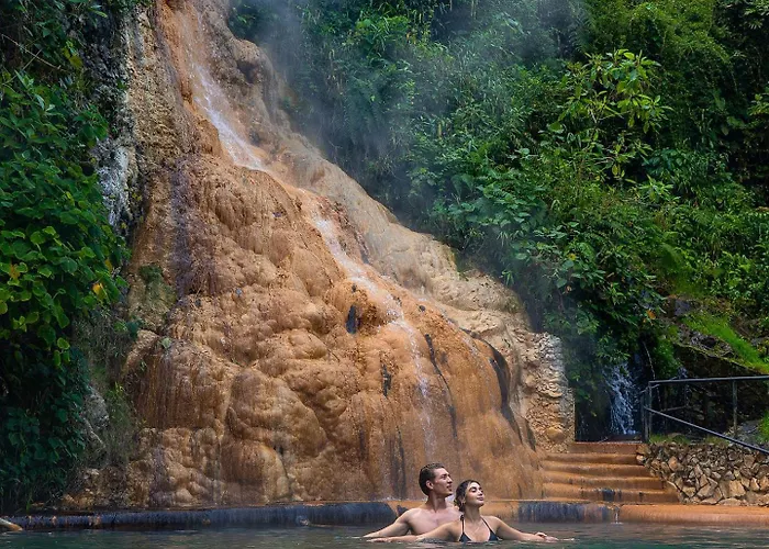 Termales Santa Rosa de Cabal dispone de instalaciones termales que incluyen una espectacular cascada natural de agua fría, un turco natural y senderos para explorar la flora y fauna única del lugar. Los planes de alojamiento incluyen acceso a las aguas termales y períodos de 4 horas para disfrutar con familia o amigos.